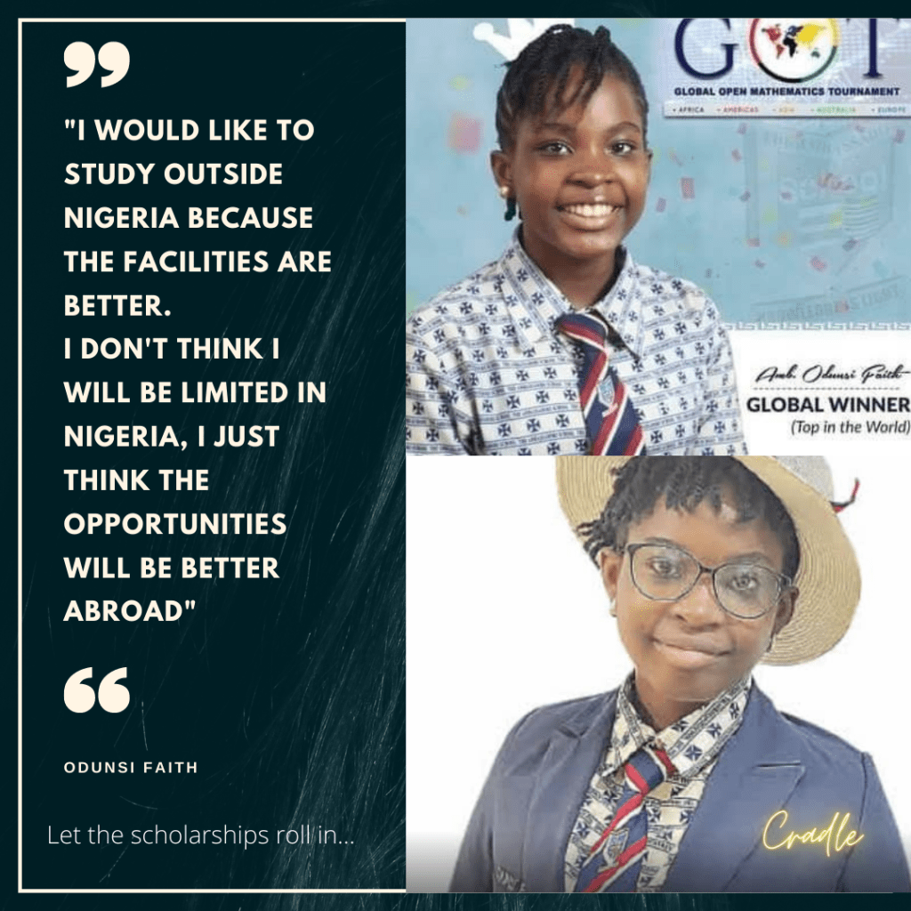 I would like to study outside Nigeria because the facilities are better abroad and the experience is better. I don’t think I will be limited in Nigeria; I just think the opportunities will be better abroad.